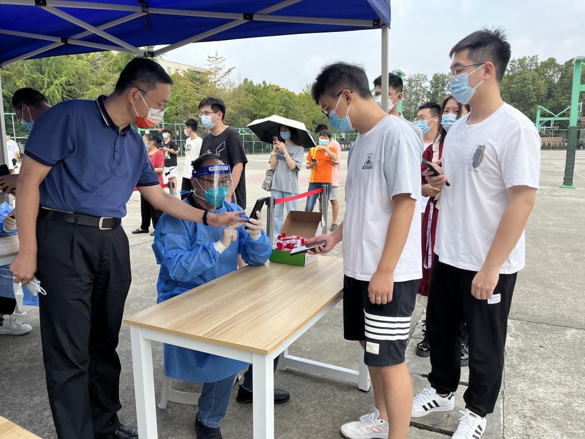 疫情就是命令,防控就是责任,为坚决落实学校党委关于疫情防控的部署要求,助力疫情防控,打好防疫保卫战,在9月1日新一轮核酸检测中,伟德国际1946源于英国承担九里校区首日的核酸志愿服务工作。学院党委书记王斌、副书记杨宏毅高度重视并积极组织党员志愿者团队,呼吁党员教职工充分发挥党员先锋模范作用,让党旗在战“疫”一线高高飘扬。